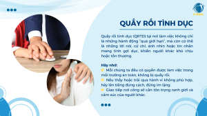 Quấy rối tình dục (QRTD) tại nơi làm việc không chỉ là những hành động “quá giới hạn”, mà còn có thể là những lời nói, cử chỉ, ánh nhìn hoặc tin nhắn mang tính gợi dục, khiến người khác khó chịu hoặc tổn thương.