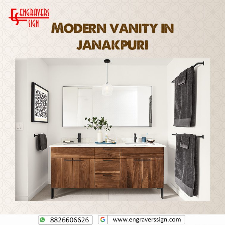 Engravers Sign specializes in modern vanity in Janakpuri with sleek designs and high-quality finishes. Their vanities combine functionality with contemporary aesthetics, offering ample storage and smooth surfaces. Each vanity is custom-made to fit client requirements and space. Engravers Sign ensures precision, durability, and a polished look. Their designs enhance bathroom interiors while maintaining convenience, elegance, and long-lasting quality.